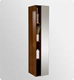 This great side cabinet features four narrow cubby holes and a mirror on its cabinet door.