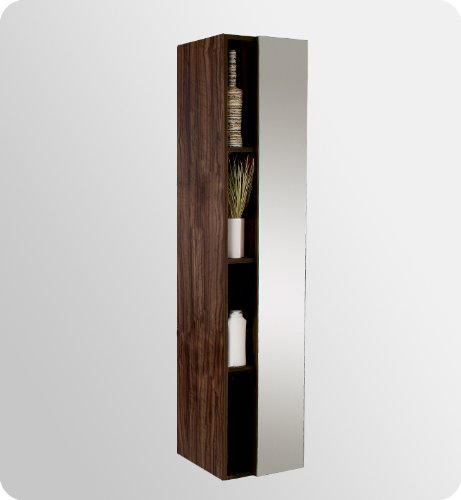 4 Cubby holes 1 Storage area with soft closing mirror door Perfect match for all Fresca walnut vanities Pictured in Walnut 1-Year warranty on parts 16 in. W x 12 in. D x 67 in. H This side cabinet comes with a Walnut finish. It features 4 narrow cubby holes and a mirror on its soft closing cabinet door. It matches nicely with any Walnut vanity.